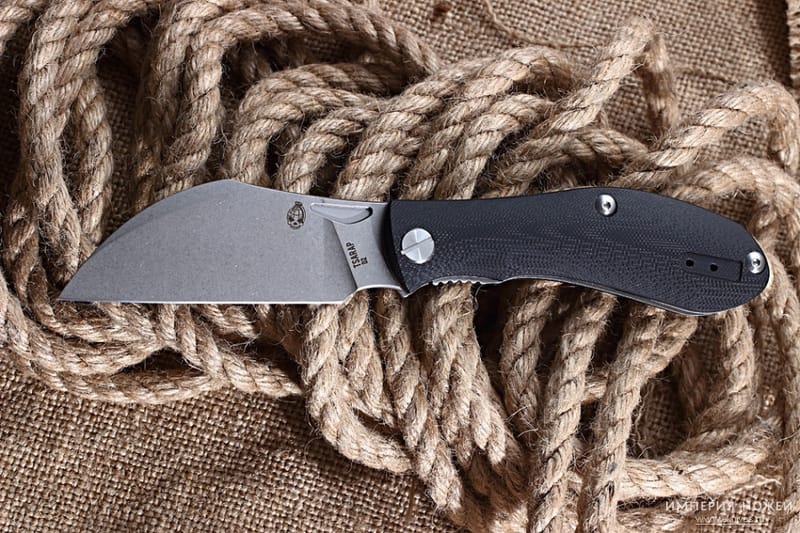 The creators of the model "TSARAP FOLDER BLACK" (Tsarap Folder Black) from the BRUTALICA company managed to create a truly interesting and unusual knife. Before us is a compact EDC knife with a rare "workcliff" geometry. The knife has a flat cutting edge and a curved butt with a false blade.
